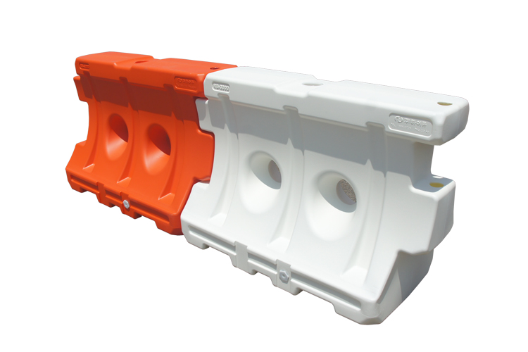 The driver can feel safe by looking at the water-filled barrier the road.